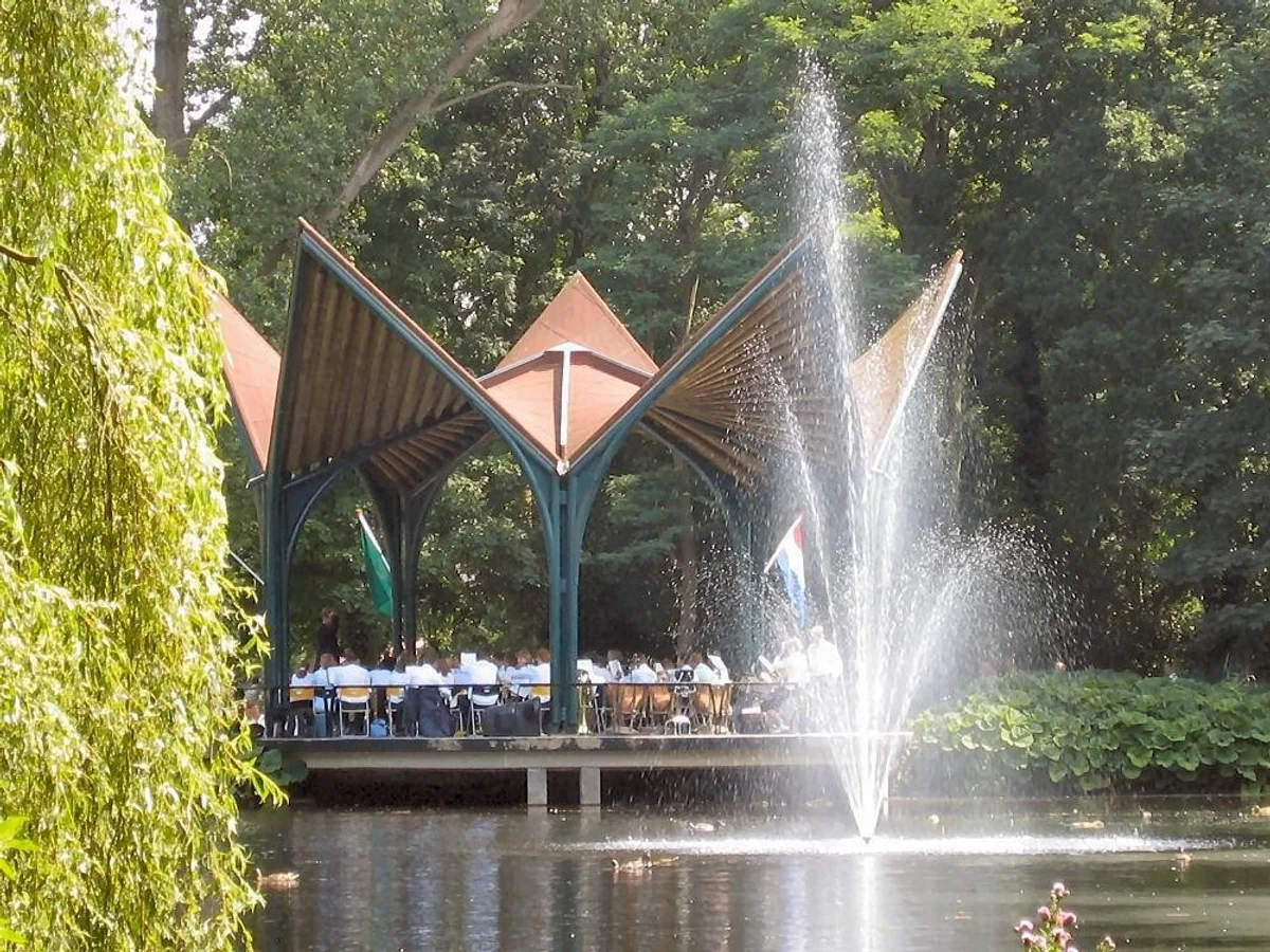 Op (de misschien wat minder voor de hand liggende datum) 13 december 1996 wordt de nieuwe muziektent in De Leidse Hout officieel geopend.